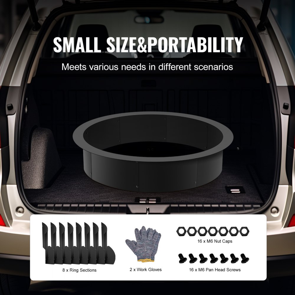 Pierścień do paleniska VEVOR, średnica zewnętrzna 40 cali / średnica wewnętrzna 36 cali, wysokość 10 cali, wkład do paleniska o grubości 2,5 mm, wytrzymała wyściółka ze stali węglowej, pierścień do samodzielnego montażu na ziemi lub w ziemi, do biwakowania na świeżym powietrzu, ognisko - Ogród i trawnik | Galaxy Sklep