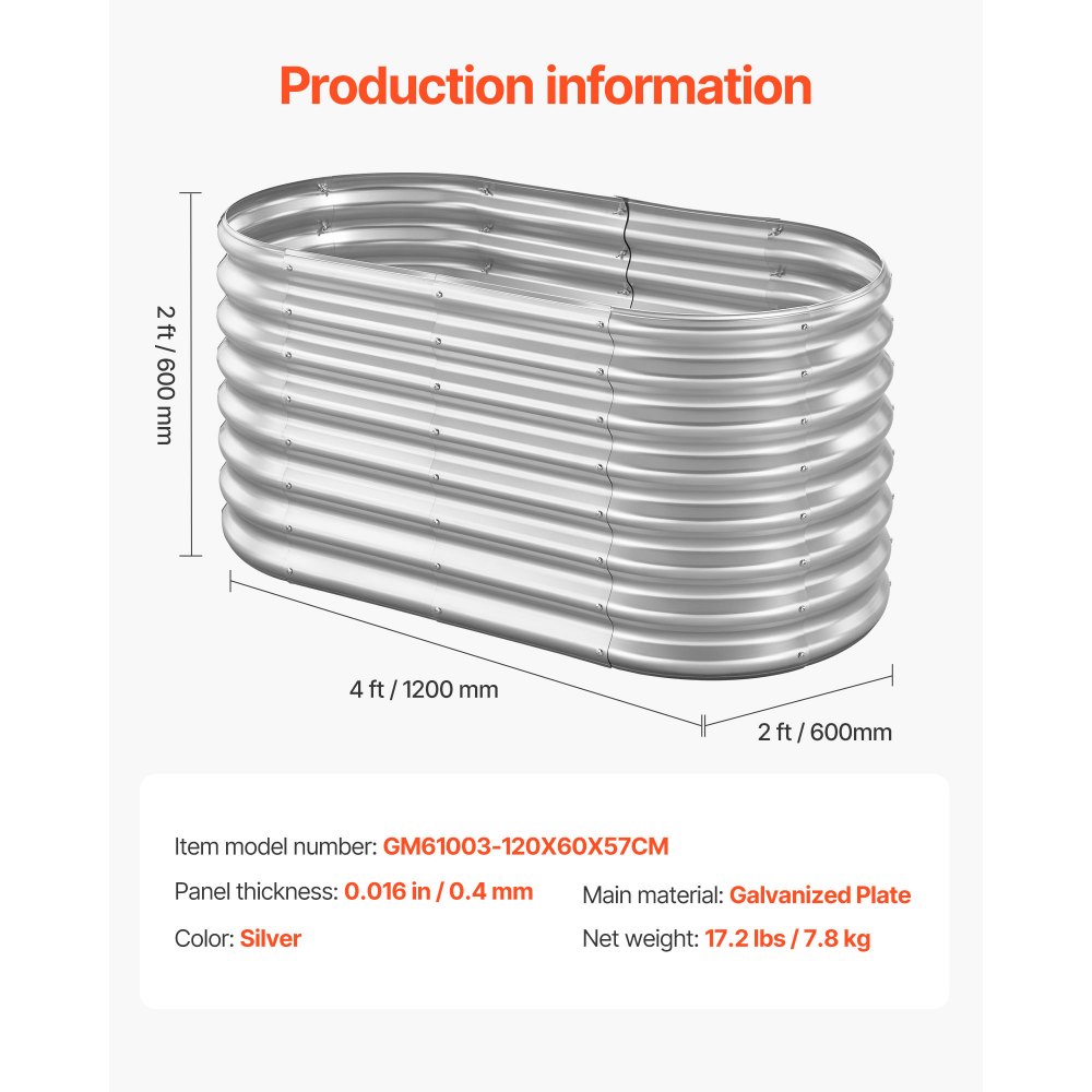 Podwyższona grządka ogrodowa, metalowa, 1200x600x600 mm, grządka do sadzenia, grządka warzywna, donica z otwartym dnem i zaokrąglonymi krawędziami, grządka kwiatowa, grządka ziołowa, idealna do warzyw, kwiatów, ziół i sukulentów, owalna - Ogród i trawnik | Galaxy Sklep