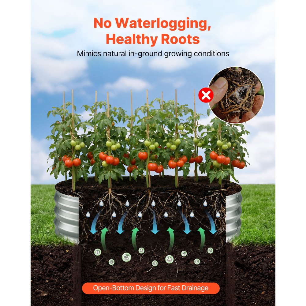 Wzmocniona i stabilna konstrukcja: Ta ogrodowa grządka jest wyposażona w panele z blachy falistej, które równomiernie rozprowadzają nacisk gleby. Pręty wzmacniające zapobiegają wybrzuszaniu się i odkształcaniu, nawet przy pełnym obciążeniu wilgotną glebą – idealne rozwiązanie do długotrwałego sadzenia.