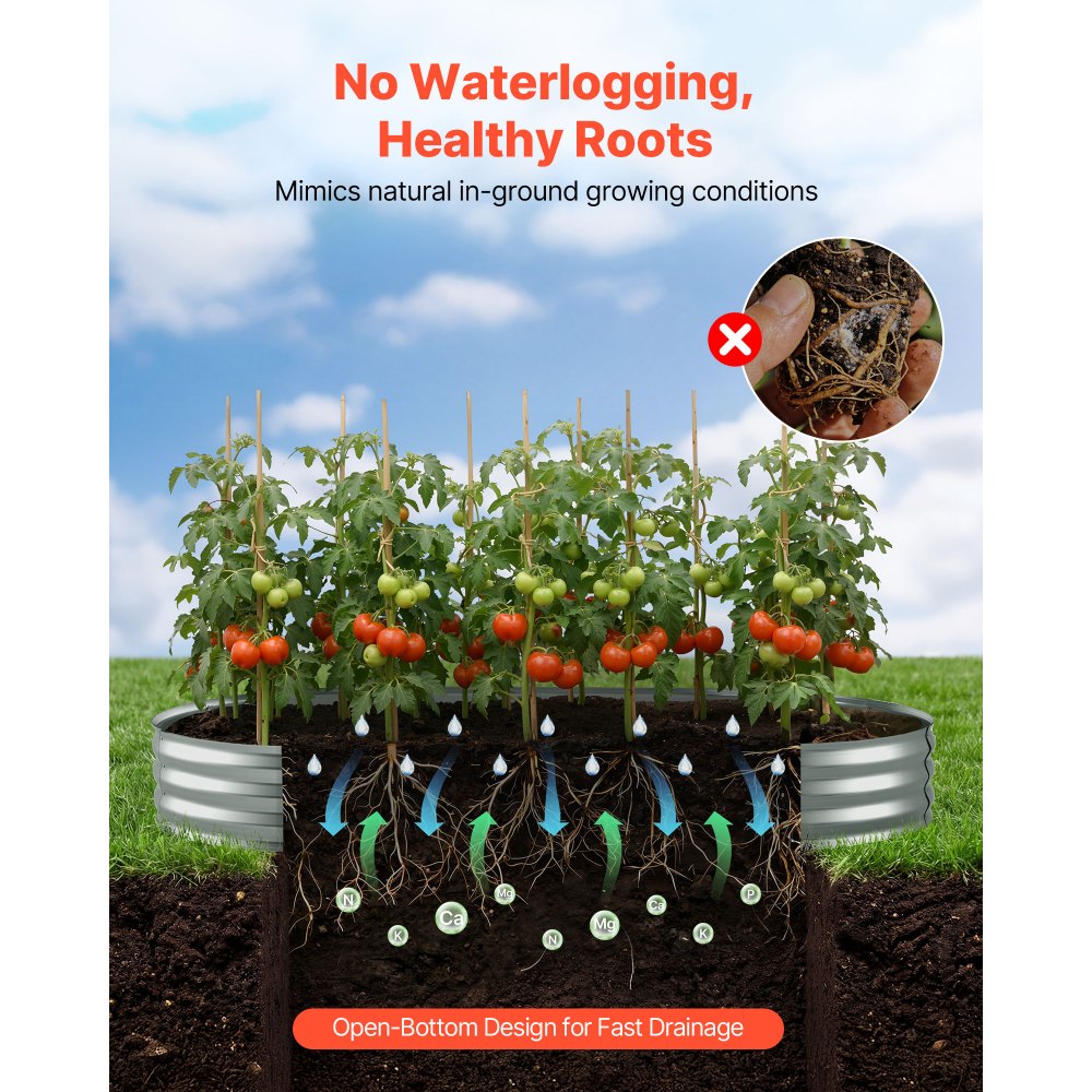 Konstrukcja bez dna, szybki drenaż: Ta doniczka ma otwartą konstrukcję dna, która umożliwia szybki odpływ nadmiaru wody. Sprzyja to zdrowemu wzrostowi korzeni i pobieraniu składników odżywczych, a także ogranicza konieczność konserwacji, nawet podczas ulewnych deszczy lub nadmiernego podlewania.