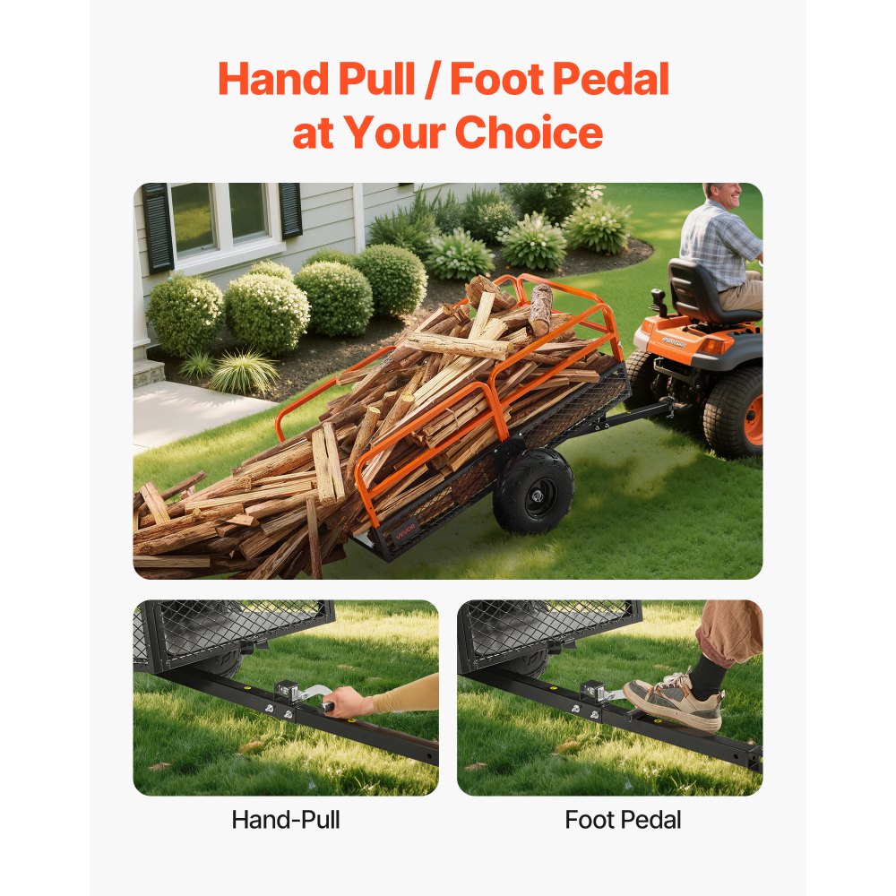 Przyczepa wywrotka VEVOR, 725,75 kg, stalowa przyczepa ATV UTV z odpinaną tylną klapą, przyczepa ogrodowa do kosiarek do trawy, traktorów i odpadów ogrodowych - Ogród i trawnik | Galaxy Sklep