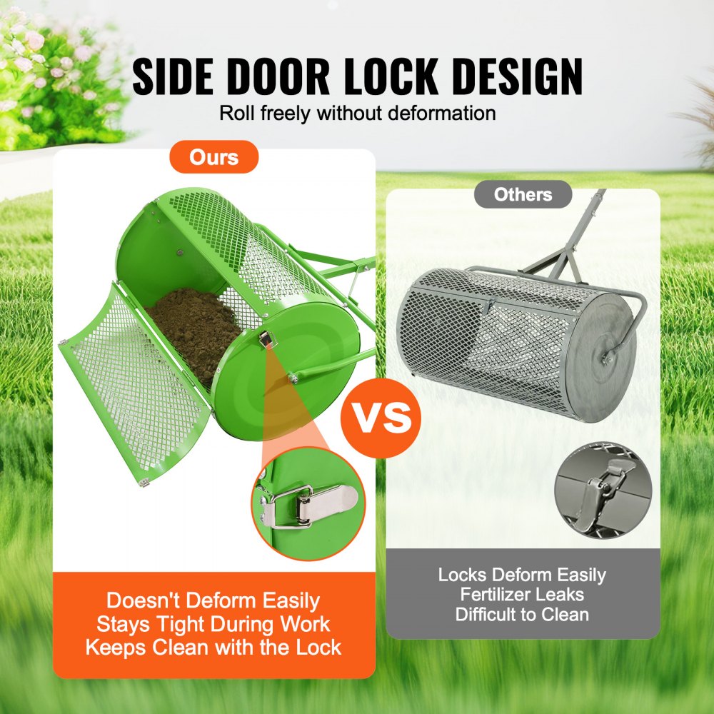 Rozrzutnik kompostu i torfu VEVOR, 61 cm, pchany/holowany rozrzutnik do trawników z regulowaną wysokością uchwytu w kształcie litery T, rozrzutnik ogrodowy ze stalowym koszem siatkowym do rozrzucania obornika i wierzchniej warstwy gleby, zielony - Ogród i trawnik | Galaxy Sklep