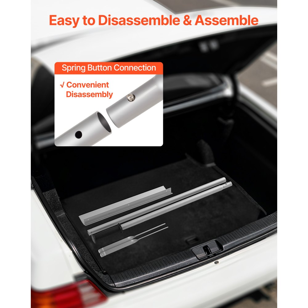 Łatwy montaż: Ta zgarniarka do żwiru nie wymaga skomplikowanych czynności montażowych, oszczędzając czas i wysiłek. Dwuczęściowa konstrukcja z blokadą sprężynową umożliwia szybki montaż i demontaż, a długość rączki można regulować w celu dopasowania do różnych zadań związanych ze sprzątaniem.