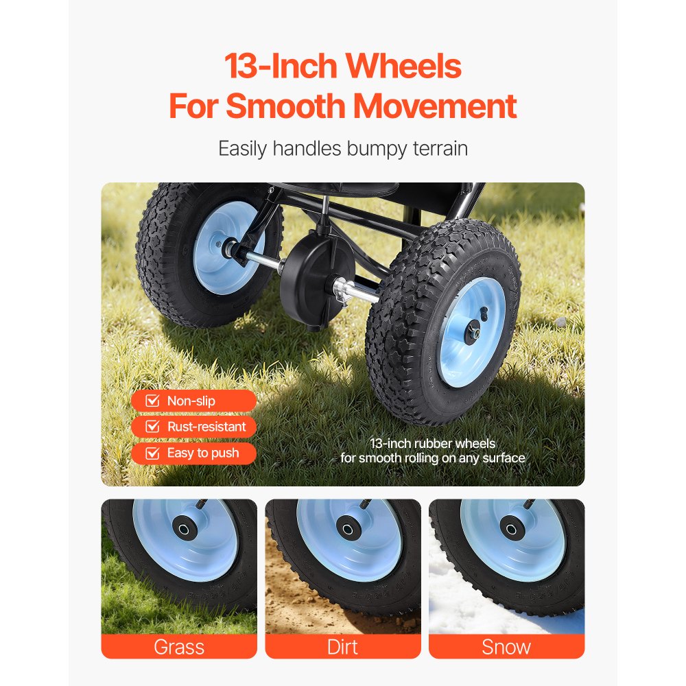 Rozsiewacz VEVOR o pojemności 45 kg, rozsiewacz nawozów o szerokości rozsiewu 0–3 m, rozsiewacz odśrodkowy z oponami pneumatycznymi o szerokości 33 cm, rozsiewacz nasion ze zbiornikiem załadowczym, jako pomoc przy siewie lub wóz do rozrzucania nawozu - Ogród i trawnik | Galaxy Sklep