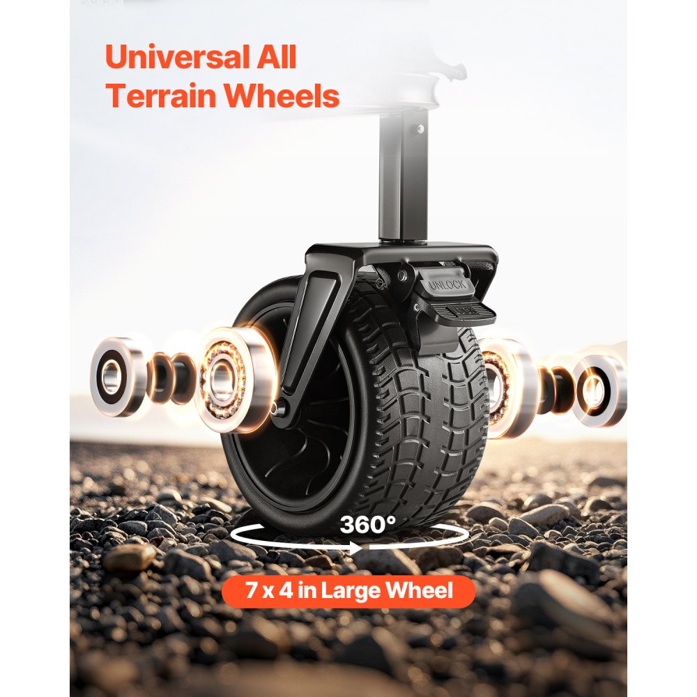 Koła terenowe: Ten składany wózek ogrodowy jest wyposażony w koła z tworzywa PVC o wymiarach 7x4 cale, które umożliwiają łatwe poruszanie się po różnych nawierzchniach, w tym po piasku, trawie i utwardzonych drogach. Niezależnie od tego, czy używasz go podczas przygód na świeżym powietrzu, zakupów czy transportu narzędzi ogrodniczych, spełni Twoje potrzeby.