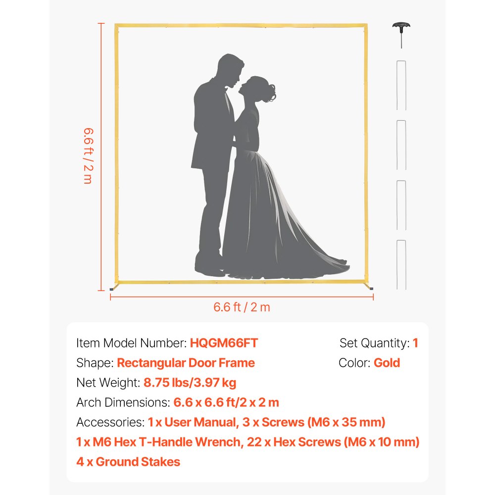 Stojak na tło łukowe VEVOR, 2x2 m, łuk ślubny, kwadratowy, metalowy stojak na tło w kolorze złotym, idealny na wesela, przyjęcia urodzinowe, ukończenia szkół, święta i ceremonie - Ogród i trawnik | Galaxy Sklep
