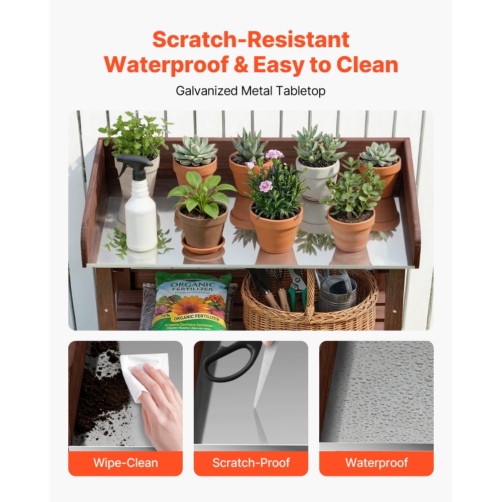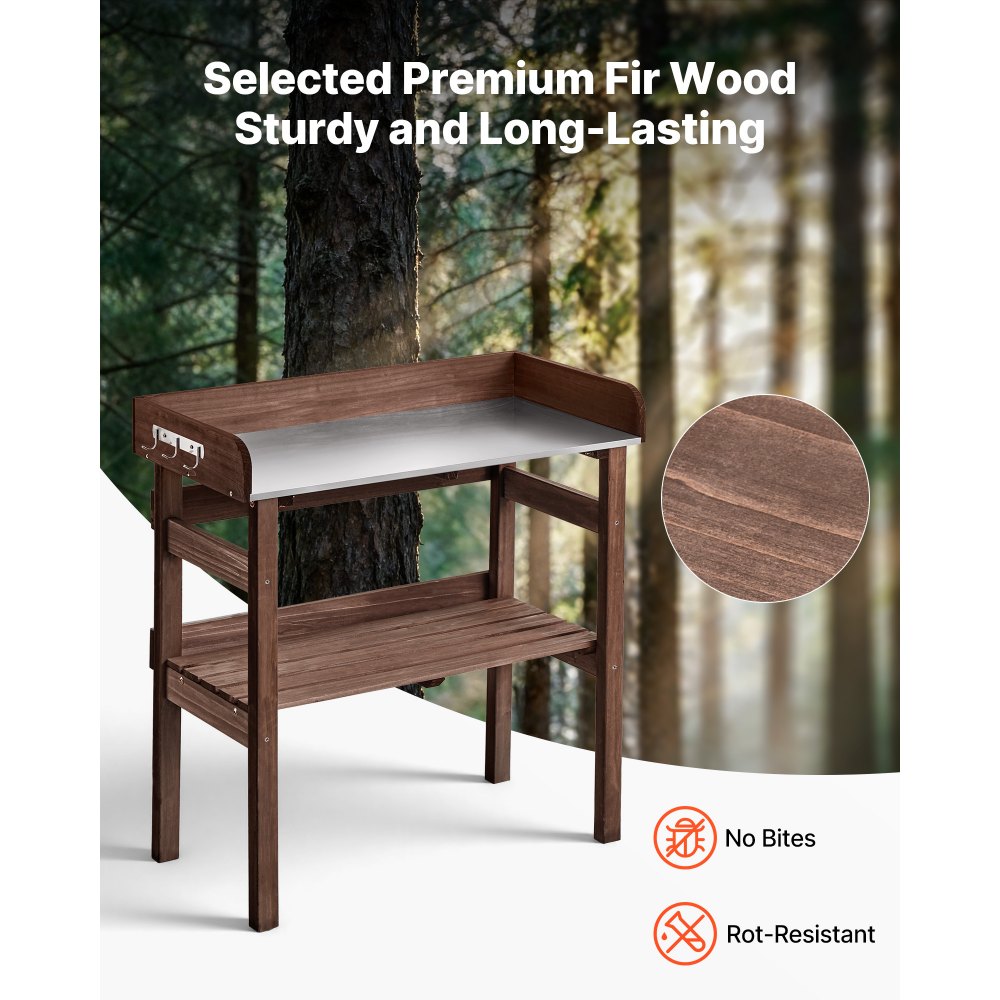 Stół do sadzenia VEVOR, stół ogrodniczy, stół roboczy do ogrodu z dużym drewnianym blatem, półkami i haczykami, stolik do kwiatów, stół ogrodowy idealny na taras, do ogrodu i na balkon, brązowy, 780x380x820 mm - Ogród i trawnik | Galaxy Sklep