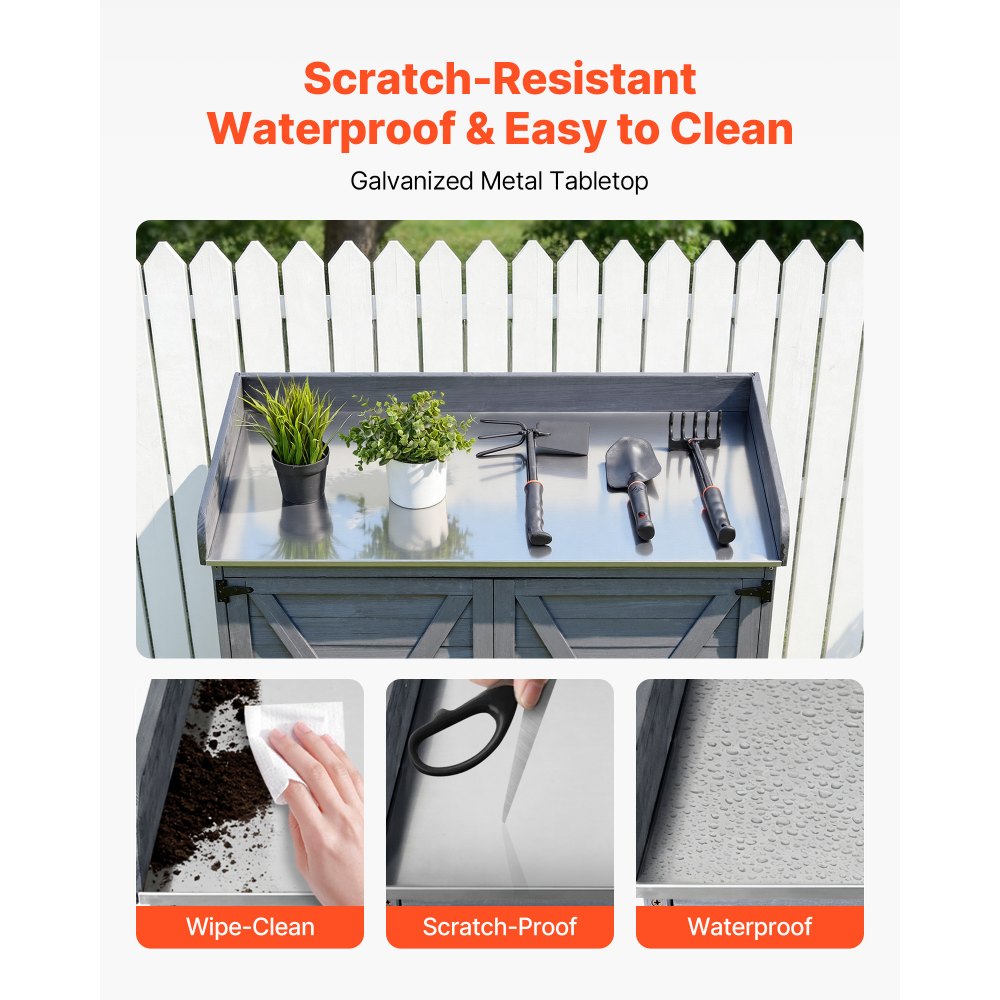 Stół do sadzenia VEVOR, stół ogrodnika, stół roboczy do ogrodu z szafką dolną i dużym blatem, szafka ogrodowa z dużą przestrzenią do przechowywania, stolik na kwiaty na patio i do ogrodu, szary, 980x480x950 mm - Ogród i trawnik | Galaxy Sklep