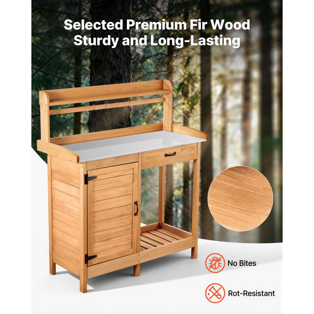 Stół do sadzenia VEVOR, stół ogrodnika, stół roboczy do ogrodu z szafką dolną, ocynkowany blat żeliwny, szuflada, półki i haczyki, stolik na kwiaty, szafka ogrodowa na taras i do ogrodu, 1120 x 465 x 1255 mm - Ogród i trawnik | Galaxy Sklep