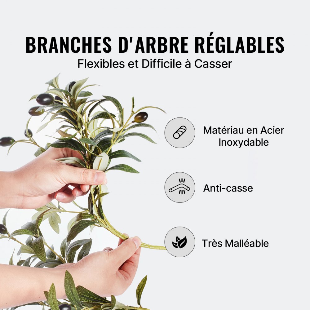 Regulowane wzory gałęzi: Wykonane ze stali nierdzewnej, nasze sztuczne choinki charakteryzują się wyjątkową elastycznością i odpornością na złamania. Możesz łatwo wyginać i regulować gałęzie według własnych upodobań, zachowując jednolity i malowniczy kształt. Dzięki solidnie przymocowanym liściom, te sztuczne rośliny zachowują swoje piękno i integralność przez długi czas.