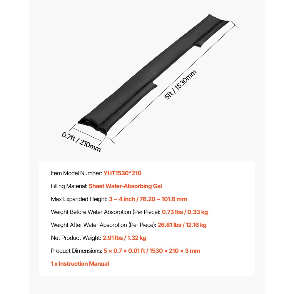 Instrukcja użycia: Ta bariera przeciwpowodziowa nie nadaje się do stosowania w połączeniu z wodą słoną, wapnem lub wapnem, ponieważ substancje te mogą wywoływać reakcje i osłabiać jej działanie.