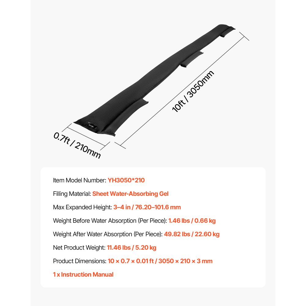 Instrukcja użycia: Ta bariera przeciwpowodziowa nie nadaje się do stosowania w połączeniu z wodą słoną, wapnem lub wapnem, ponieważ mogą one powodować reakcje i pogarszać wydajność.