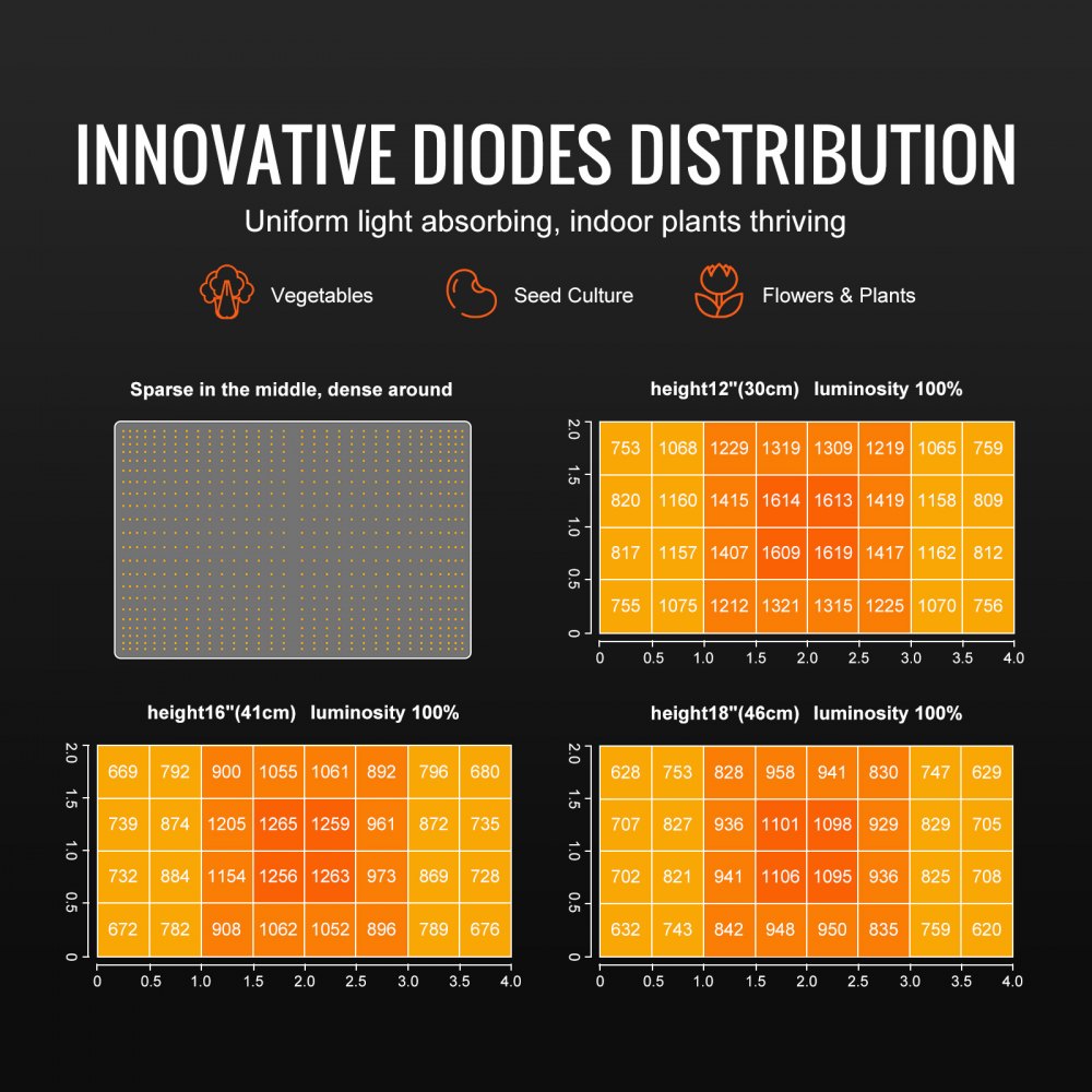 Nadaje się do wszystkich rodzajów roślin: Lampa VEVOR jest szeroko stosowana do uprawy wszelkiego rodzaju warzyw, nasion, kwiatów i innych roślin. Szczególnie dobrze sprawdza się w szklarniach, namiotach uprawowych, na balkonach i regałach na rośliny.