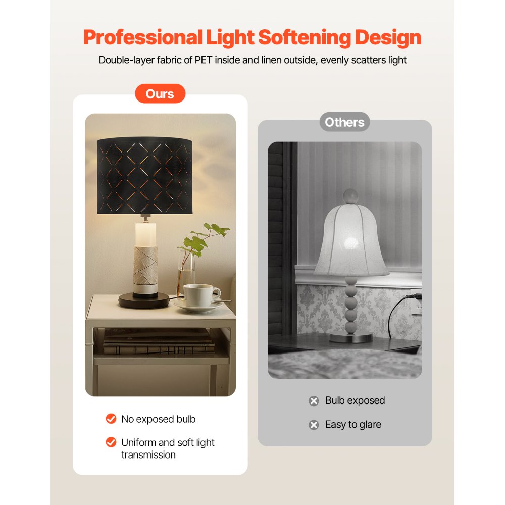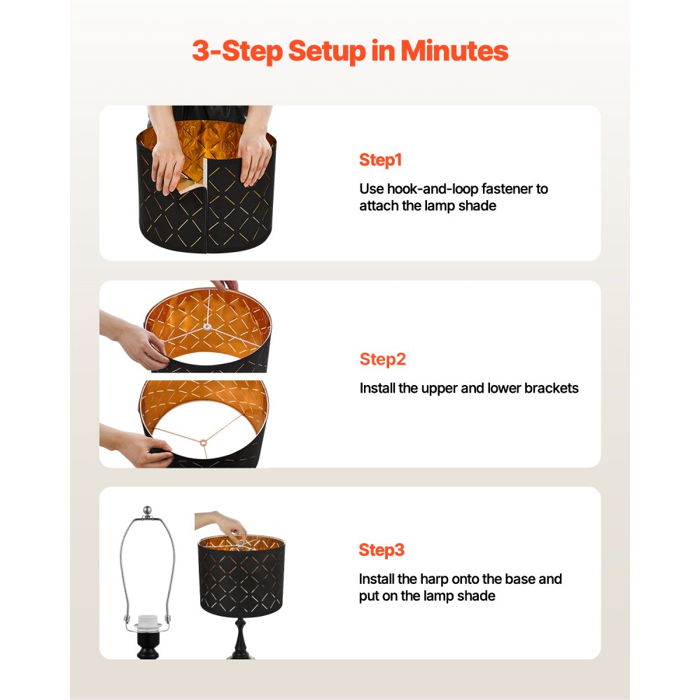 Abażur bębnowy VEVOR 33x33x25 cm (góra x dół x wysokość), 2 średnie wymienne abażury z tkaniny TC + PET, abażur harfowy do lamp stołowych i podłogowych (wzór Black Diamond Hollow)