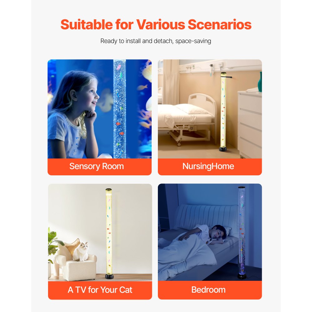 Szerokie zastosowanie: Nasza sensoryczna fajka wodna idealnie nadaje się do salonów, gabinetów terapeutycznych, klinik medycznych, ośrodków rehabilitacyjnych i dla miłośników akwarystyki.