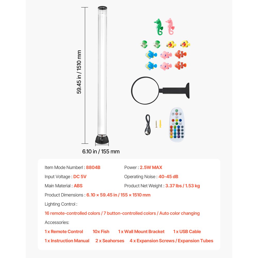 Zabezpieczenie przed przewróceniem: Dzięki wysokości 1500 mm ta lampa w kształcie bańki wodnej idealnie nadaje się do stworzenia ciepłej atmosfery. Poszerzone ścianki rurki zapobiegają odkształcaniu się ryb.