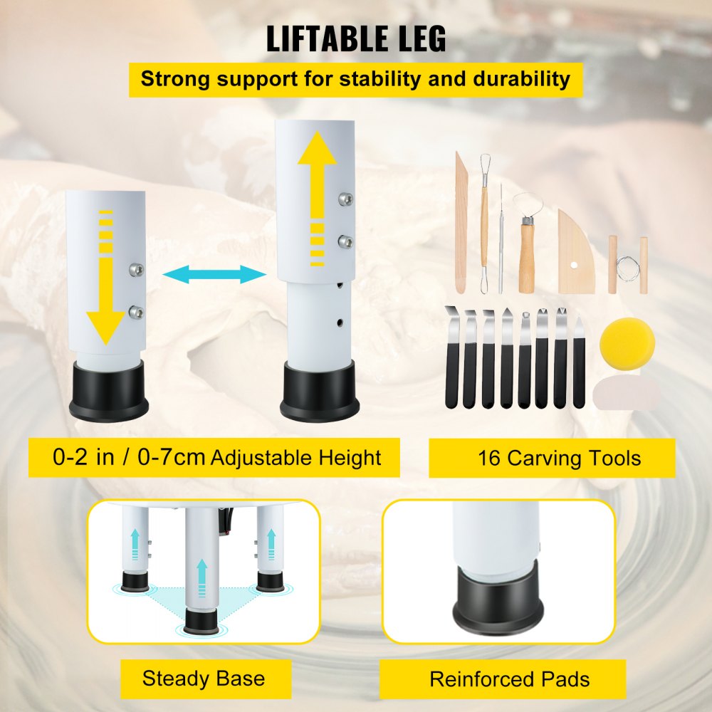 KOMPLETNE NARZĘDZIA DO RZEŹBIENIA W ZESTAWIE: W zestawie z kołem garncarskim znajduje się 8 narzędzi ze stali nierdzewnej i 8 narzędzi drewnianych, dzięki którym z łatwością stworzysz zastawę stołową, wazony i dzieła sztuki ceramicznej. Nadaje się do nauczania w szkole, baru garncarskiego, użytku domowego itp. Wspomaga proces rzucania i kształtowania, spełniając potrzeby najbardziej profesjonalnych rzemieślników ceramicznych i entuzjastów amatorów.