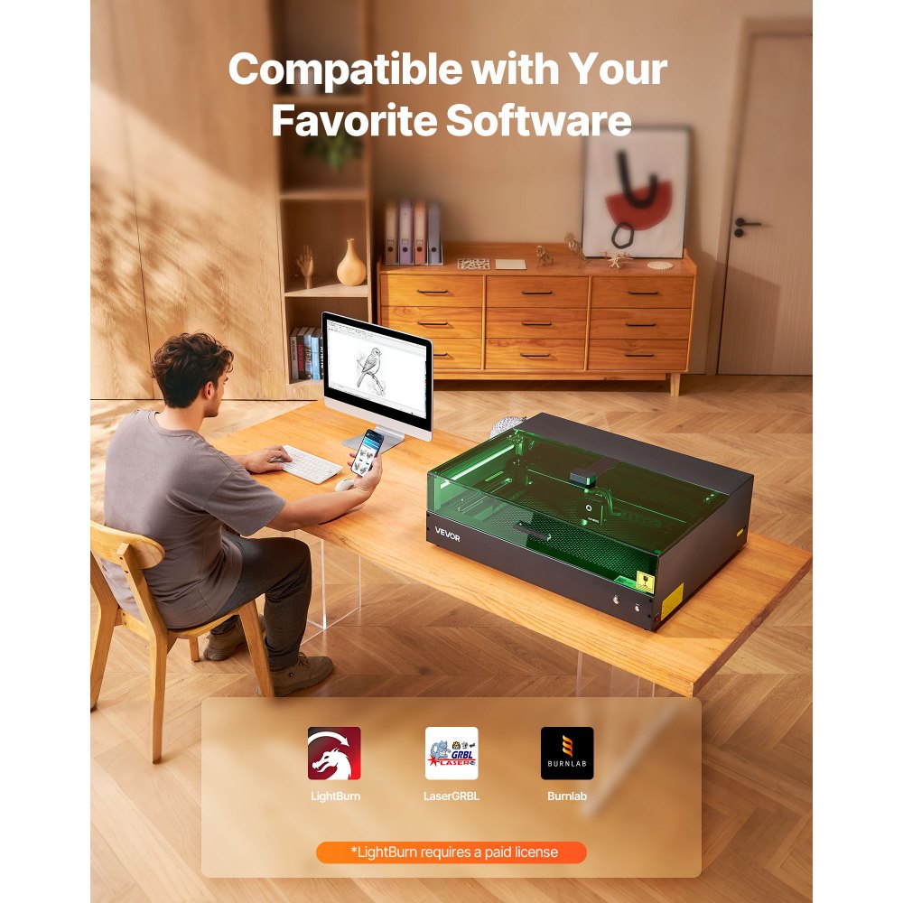 Łatwa kompatybilność z oprogramowaniem: Ta maszyna do grawerowania i cięcia laserowego obsługuje LaserGRBL (Windows, tylko dla urządzeń o niskiej prędkości), LightBurn (Mac OS/Windows, płatne oprogramowanie) oraz Burnlab. Idealna dla początkujących, majsterkowiczów i małych studiów.