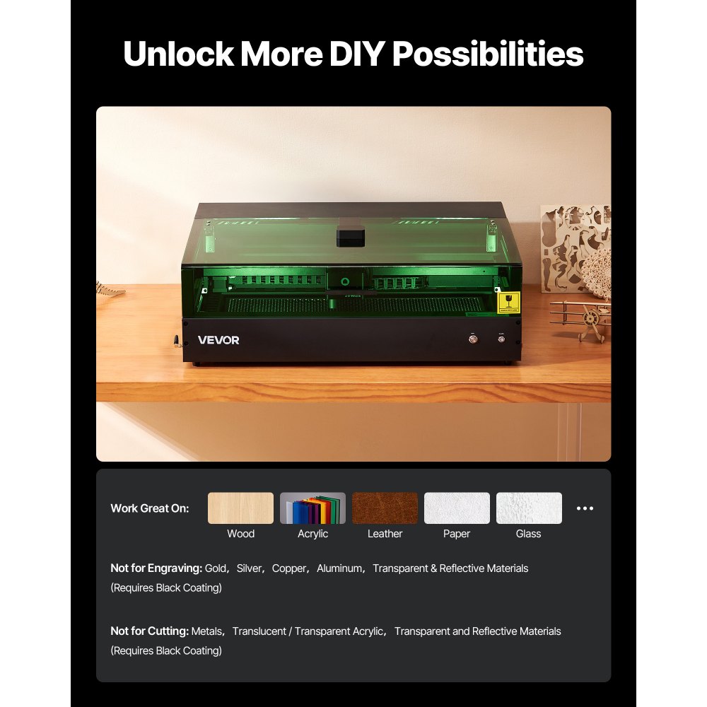 Wszechstronne wsparcie materiałów: Nasz laser diodowy idealnie nadaje się do grawerowania drewna, skóry, papieru, akrylu i wielu innych. Nie nadaje się do grawerowania złota, srebra, miedzi, aluminium ani materiałów przezroczystych i odblaskowych (wymaga czarnej powłoki). Nie nadaje się do cięcia metali, akrylu półprzezroczystego/przezroczystego ani materiałów przezroczystych i odblaskowych (wymaga czarnej powłoki).