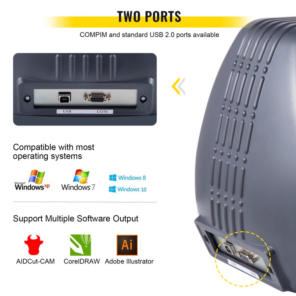 【WYSOKA KOMPATYBILNOŚĆ】- Dostępne z interfejsami COMPIM i USB dla bardziej precyzyjnej kontroli. Obsługuje języki DM/PL, HP/GL. System: komputer PC z procesorem Pentium lub kompatybilny komputer (Windows), Windows XP/VISTA/7/8/10 (32 i 64-bit). NIE jest kompatybilny z systemem Mac.