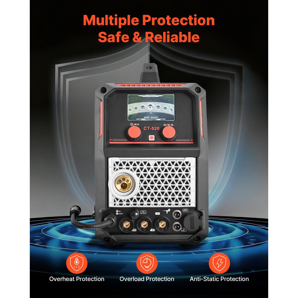 Wyświetlacz cyfrowy: Wyposażona w składany wyświetlacz cyfrowy LCD, ta spawarka plazmowa wyraźnie pokazuje parametry i tryby pracy, co ułatwia obsługę zarówno początkującym, jak i profesjonalistom. Zintegrowane zabezpieczenie przed przegrzaniem i przeciążeniem zapewnia bezpieczną pracę i dłuższą żywotność.
