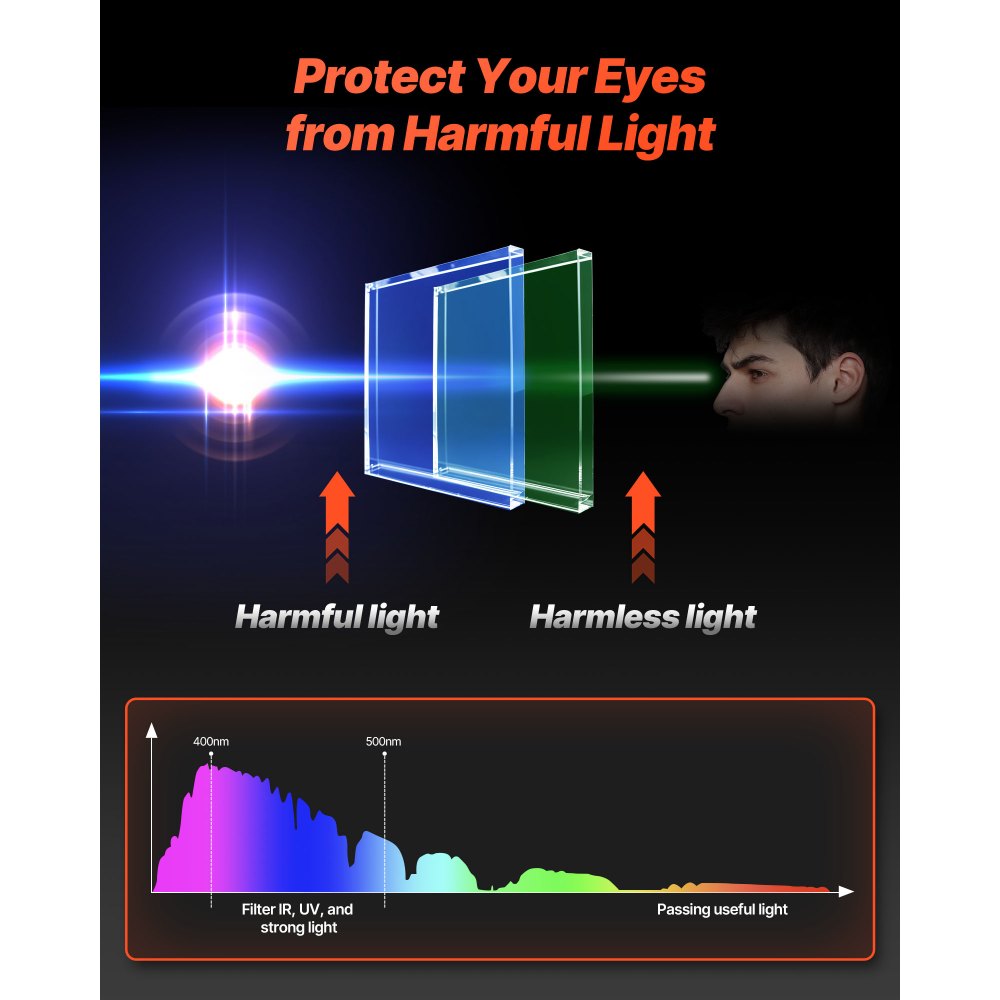 Automatyczne przyciemnianie w milisekundach: Wyposażona w 4 inteligentne czujniki łuku, nasza osłona spawalnicza automatycznie przyciemnia się w zaledwie 1/20 000 sekundy – filtruje szkodliwe i intensywne światło, redukuje oślepiające działanie łuku, poprawia ostrość widzenia i ochronę oczu