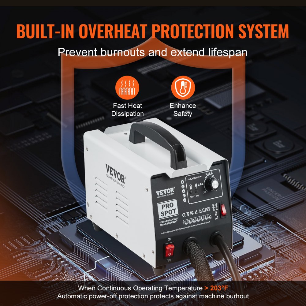 Profesjonalne usuwanie wgnieceń: Urządzenie do usuwania wgnieceń ze stalowych paneli nadwozia VEVOR Stud Welder Dent Puller to szybkie i skuteczne rozwiązanie do usuwania wgnieceń, zapewniające precyzyjne usuwanie wgnieceń i kontrolowaną siłę, co pozwala na profesjonalną naprawę wgnieceń za każdym razem.