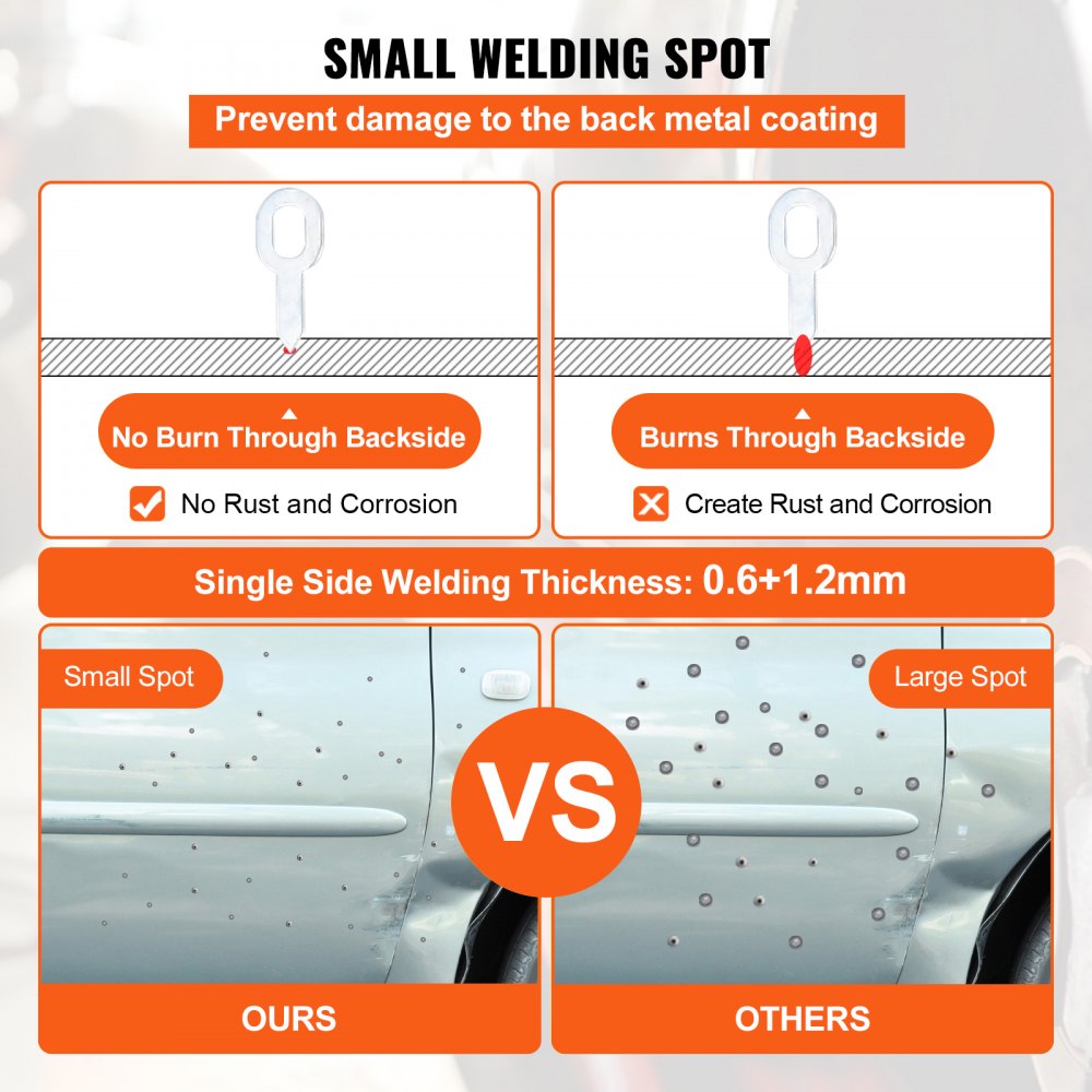 Małe ślady spawów: W porównaniu z innymi produktami, grubość jednostronnego spawu naszego narzędzia do naprawy wgnieceń wynosi 0,6+1,2 mm. Zapewnia to małe punkty spawów przy jednoczesnym zachowaniu stosunkowo wysokiej wytrzymałości, gwarantując, że znajdująca się pod spodem powłoka metalowa lub powierzchnia lakieru pozostaną nienaruszone.