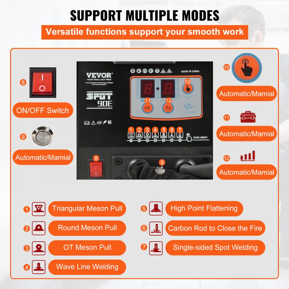 7 trybów do wyboru: 7 trybów spawania do wyboru; wiele regulowanych poziomów mocy spawania; funkcje i wydajność są wyświetlane na wyświetlaczu cyfrowym. W dowolnym momencie można przełączać się między trybem automatycznym i ręcznym, co ułatwia obsługę i oszczędza czas.