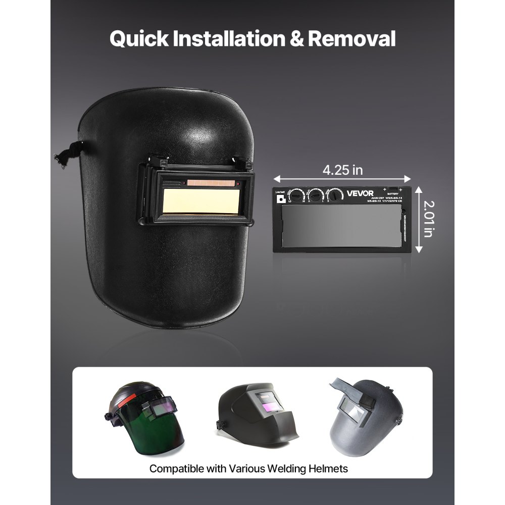 Soczewka spawalnicza VEVOR 108 x 51 mm, True Color, regulowany stopień zaciemnienia 5-13, okulary ochronne z podwójnym czujnikiem łuku, kompatybilne z większością hełmów spawalniczych do zastosowań TIG, MIG i MMA