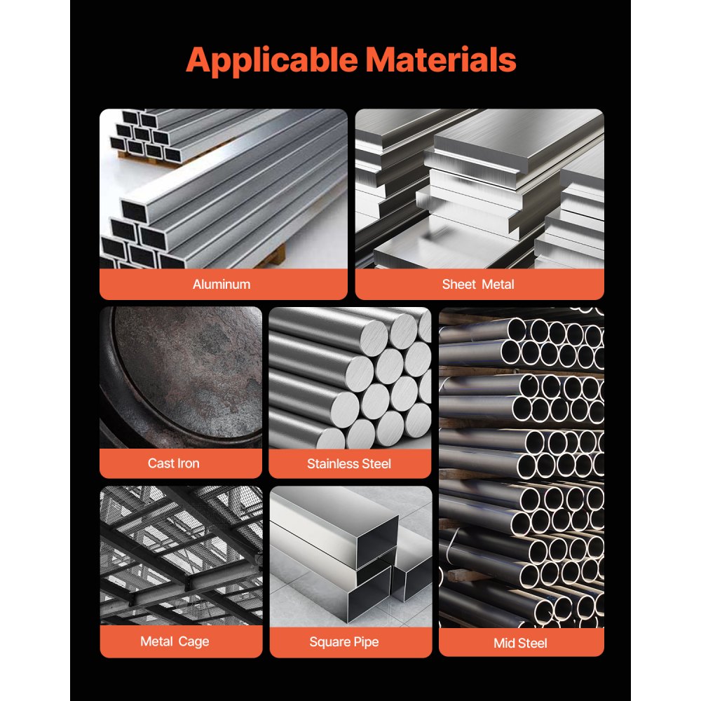 Wysoka wydajność: Ta spawarka do aluminium generuje prąd wyjściowy o natężeniu 250 A i umożliwia spawanie elementów o grubości do 15 mm. Jest kompatybilna z różnymi materiałami, w tym stalą miękką, aluminium, stalą nierdzewną, żeliwem, blachą, rurami kwadratowymi i klatkami metalowymi, zapewniając gładkie i nieskazitelne spoiny.