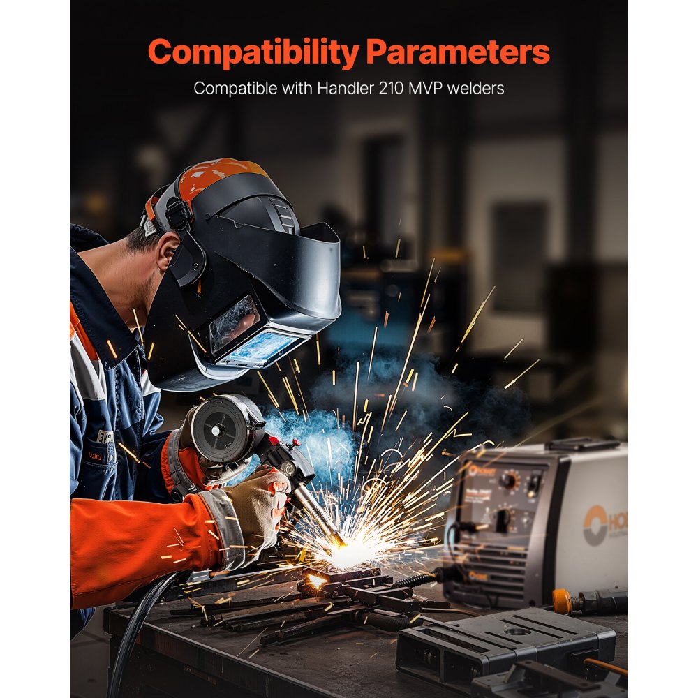 Uchwyt spawalniczy VEVOR 100A z kablem 3 m, kompatybilny ze spawarkami MIG Hobart Handler 210 MVP, odpowiedni do drutów spawalniczych z rdzeniem topnikowym, drutów litych i aluminiowych o średnicy 0,58/0,0762/0,0899 cm - Spawalniczy | Galaxy Sklep