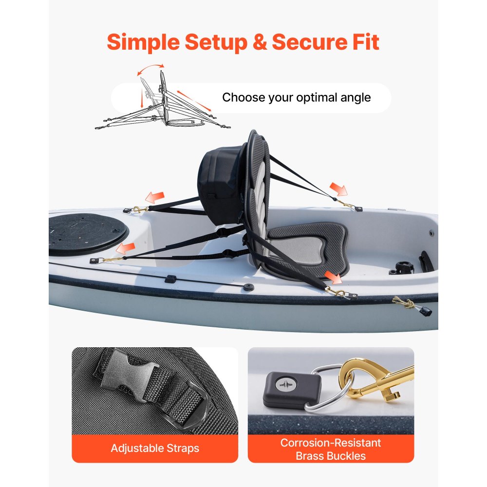 Uniwersalny i bezpieczny montaż: Wyposażone w cztery regulowane paski, nasze siedzisko kajakowe pasuje do większości kajaków, kanadyjek i desek SUP. Siedzi stabilnie i bezpiecznie, a także można je elastycznie dopasować do różnych kształtów kadłuba.