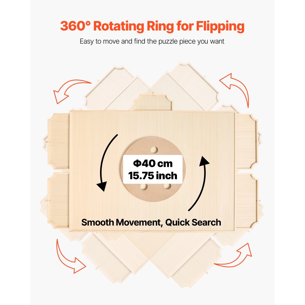 Obrotowy pierścień podstawy 360°: Ten przenośny stół do układania puzzli umożliwia płynny obrót o 360°. W ciągu zaledwie kilku sekund możesz bez wysiłku obrócić stół do żądanej pozycji. Zapewnia wygodny i przyjemny sposób grania w puzzle.