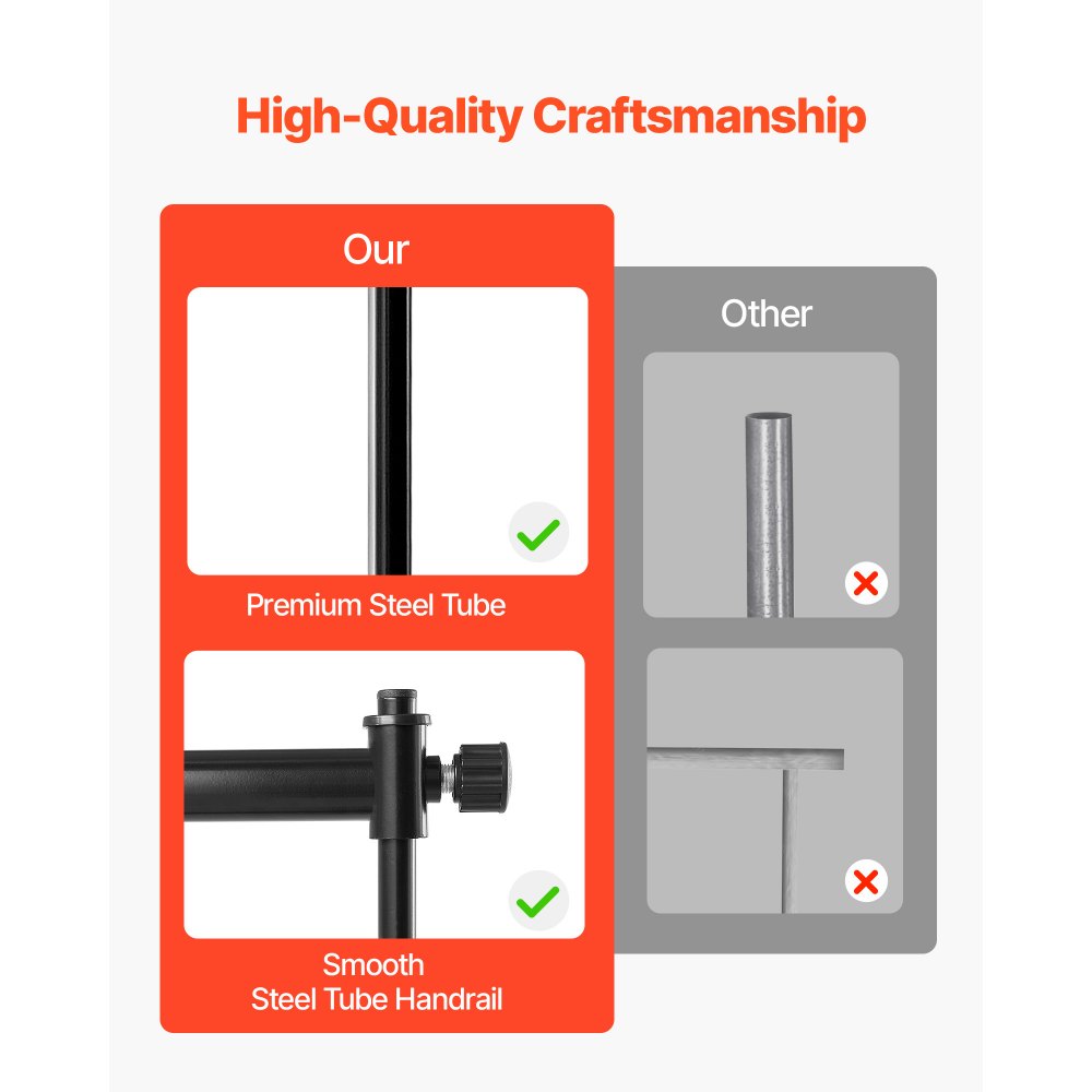 10-stopniowa regulacja wysokości: Przenośny drążek baletowy posiada 10 ustawień wysokości, każde co 4 cale, z zakresem regulacji od 11,4 do 47,44 cala (290–1205 mm). Drążek posiada również boczny uchwyt blokujący, ułatwiający regulację wysokości.