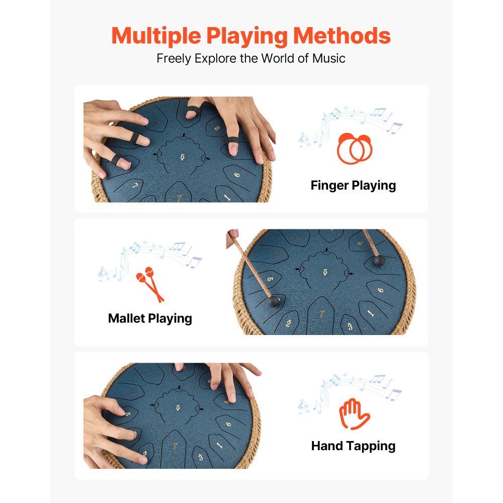 Bęben językowy VEVOR, Ø305 mm, 13 tonów, bęben deszczowy, C-dur, z książeczką nutową i pałeczkami, instrument perkusyjny do medytacji, jogi i edukacji muzycznej dla początkujących, stalowy bęben językowy, granatowy - Sport i rekreacja | Galaxy Sklep