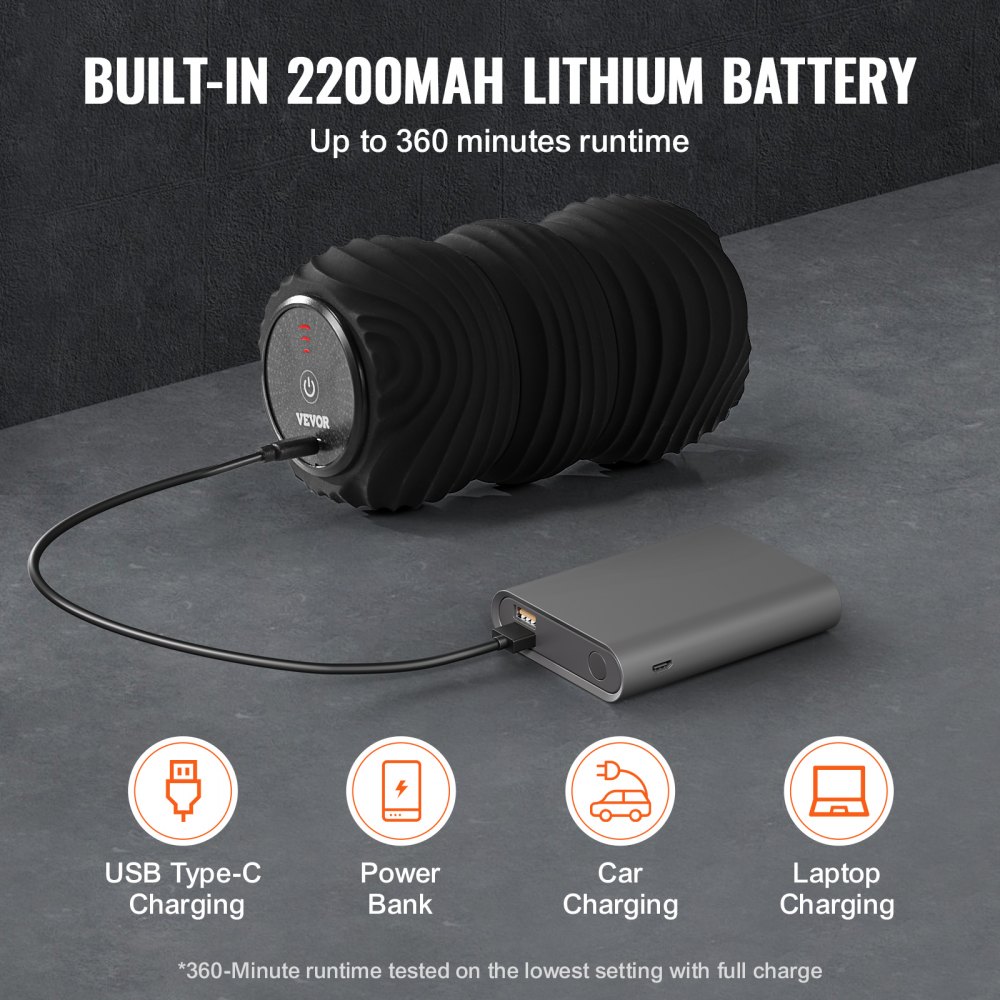 Wygodne ładowanie przez USB: Ta wibrująca silikonowa piłka masująca oferuje do 300 minut pracy na najniższym ustawieniu dzięki baterii o pojemności 2200 mAh. Można ją ładować w dowolnym miejscu i czasie za pomocą kabla USB typu C z dowolnego powerbanku, laptopa lub gniazdka ściennego.