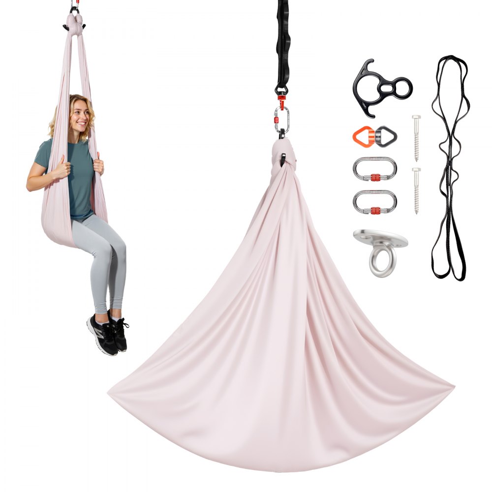 Hamak do jogi powietrznej, maks. udźwig 136,07 kg, huśtawka do jogi z nylonowej tkaniny, lina daisy i torba z zamkiem błyskawicznym z polietylenu, dwufunkcyjna huśtawka gimnastyczna do ćwiczeń antygrawitacyjnych, różowy - Sport i rekreacja | Galaxy Sklep