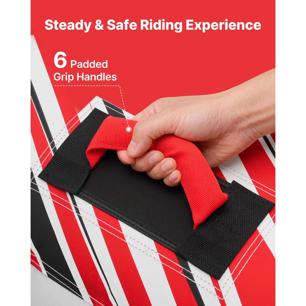 Holowana dętka do łodzi, holownik do sportów wodnych dla 3 osób, udźwig do 231 kg, z płetwami, nylonową osłoną, wyściełanymi uchwytami i zaworem bezpieczeństwa, do jezior, rzek i mórz, kolor czerwony - Sport i rekreacja | Galaxy Sklep