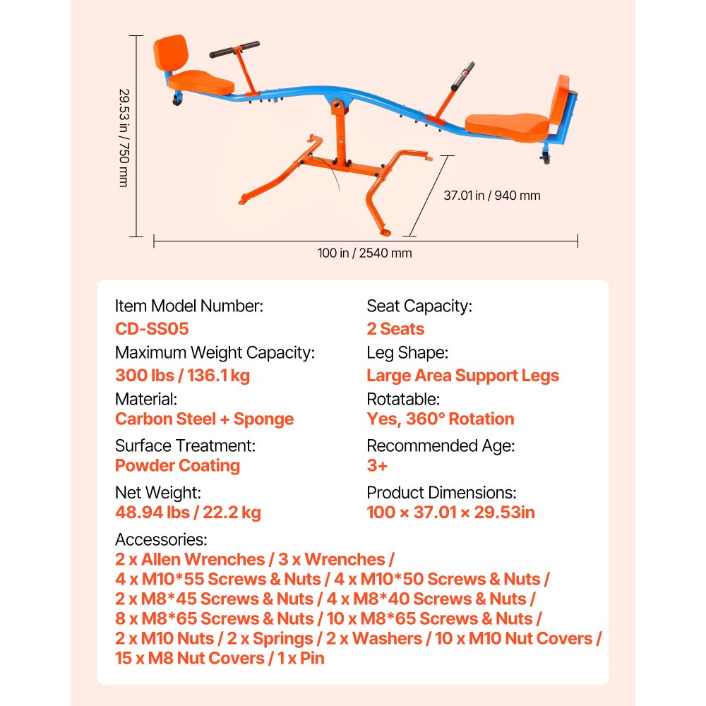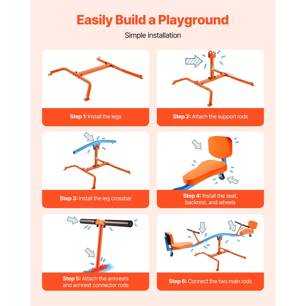 Wygodne i stabilne siedziska: siedziska o wymiarach 430 x 290 x 40 mm wygodnie pomieszczą dzieci w wieku od 3 lat. Wyściełane poręcze (φ0,98 cala/φ25 mm) zapewniają bezpieczne podparcie i równowagę. Dzieci mogą bawić się bez końca, nie męcząc się i nie martwiąc.