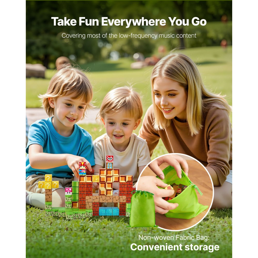 Łatwe przechowywanie: Dołączona torba z materiału umożliwia szybkie i łatwe czyszczenie. Nasze magnetyczne kostki konstrukcyjne są lekkie i przenośne, więc Twoje dziecko może zabrać je wszędzie, aby kreatywnie się bawić w podróży.