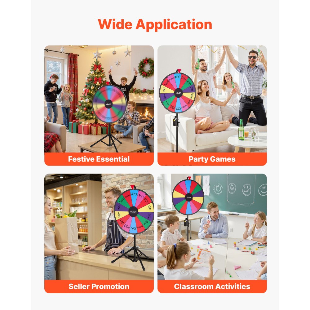 Koło Fortuny VEVOR (61 cm) 14 slotów Koło Fortuny ze statywem, regulowana wysokość, ruletka do gier loteryjnych z gąbką do tablicy i 2 markerami, 6 kolorów, idealne na imprezy, puby, targi, karnawał - Sport i rekreacja | Galaxy Sklep