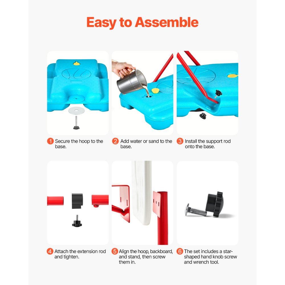 Kosz do koszykówki dla dzieci VEVOR, regulowany na wysokość, przenośne boisko do koszykówki z podstawą do napełniania, gra sportowa na podwórku, zabawka do koszykówki dla maluchów w wieku 3-8 lat, chłopców i dziewcząt - Sport i rekreacja | Galaxy Sklep