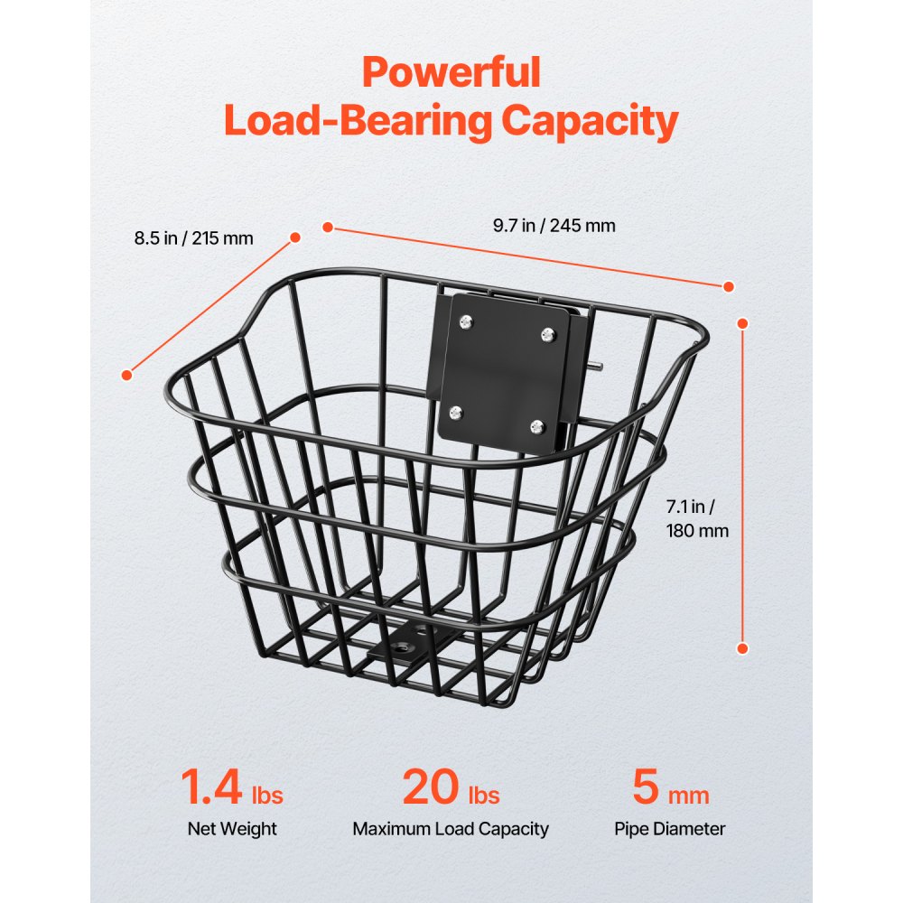 Koszyk na przednie koło VEVOR 245 x 215 x 180 mm, koszyk na hulajnogę ze stałym uchwytem, maks. ładowność 9 kg, solidny koszyk na kierownicę ze stali, koszyk na rower dla dzieci/koszyk na rower dla dorosłych/akcesorium do hulajnogi elektrycznej - Sport i rekreacja | Galaxy Sklep