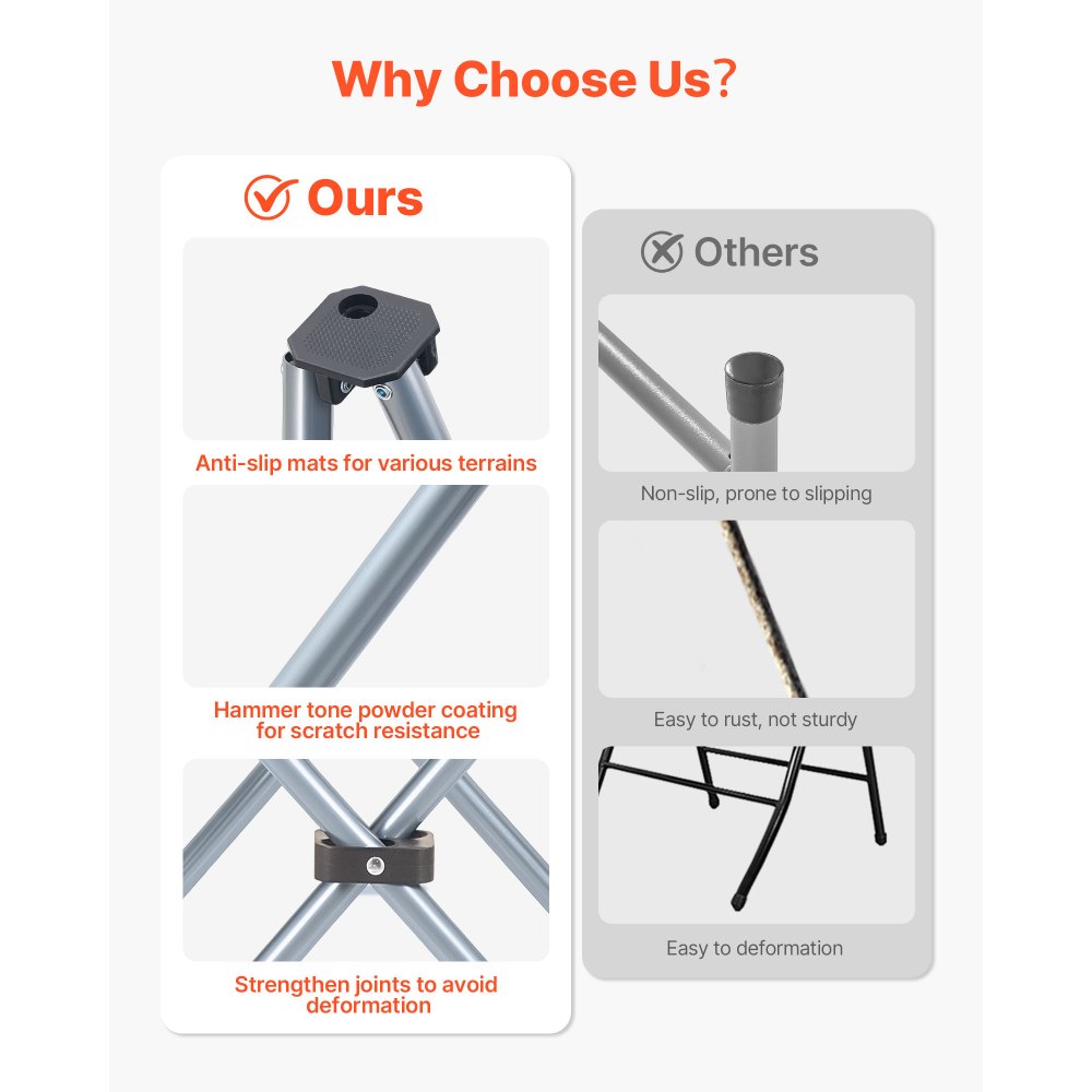 Nośność do 150 kg: To solidne krzesło wędkarskie zostało zaprojektowane z myślą o stabilności i udźwigu do 150 kg (330 funtów). Rama ze stali węglowej, wzmocnione rury stalowe i konstrukcja nośna w kształcie litery X zapewniają niezawodną wytrzymałość i trwałość podczas codziennego użytkowania na świeżym powietrzu.