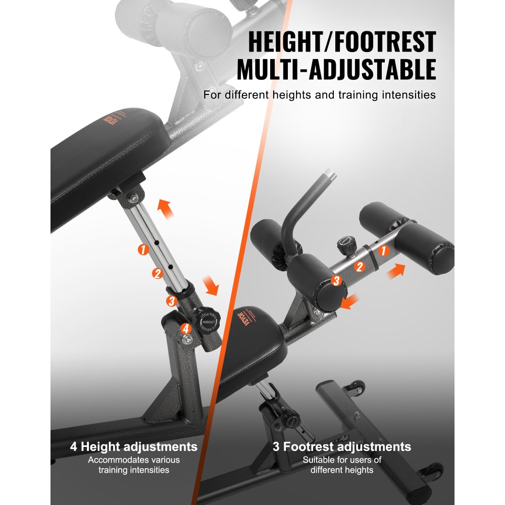 Ławka do brzuszków VEVOR, ławka do ćwiczeń mięśni brzucha, regulowana wysokość na 4 poziomach (1630 x 620 x 1055 cm), trenażer pleców (nośność 454 kg), do ćwiczeń w domu, na siłowni, treningu siłowego, treningu mięśni całego ciała - Sport i rekreacja | Galaxy Sklep