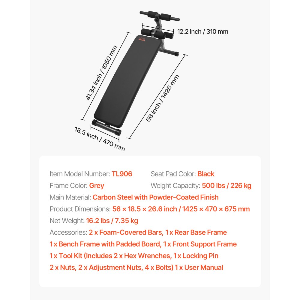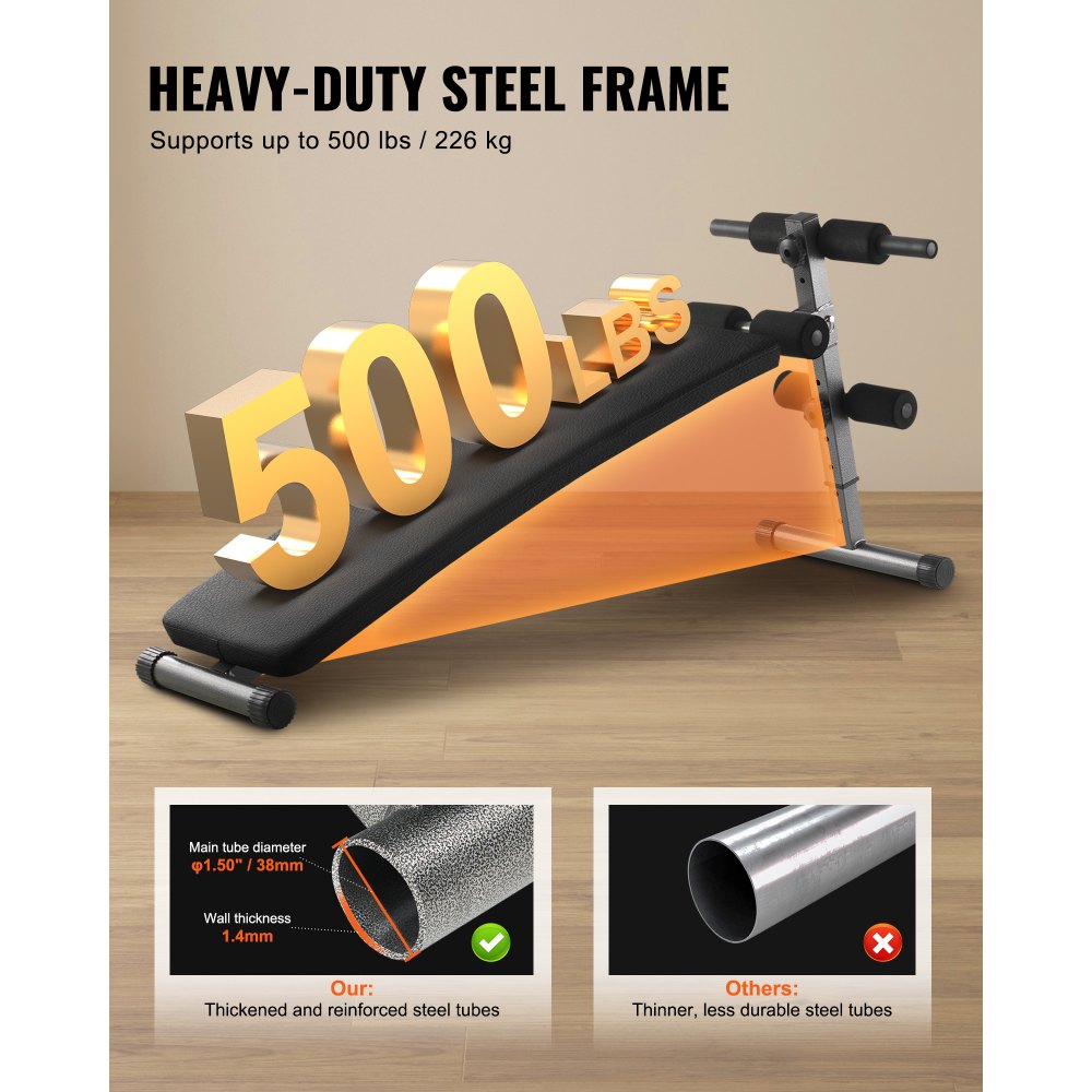 Ławka do brzuszków VEVOR, zakrzywiona ławka do ćwiczeń brzucha, 5 poziomów regulacji wysokości (1425 x 470 x 675 mm), trenażer pleców (nośność 226 kg), do ćwiczeń w domu, na siłowni, treningu siłowego, treningu mięśni całego ciała