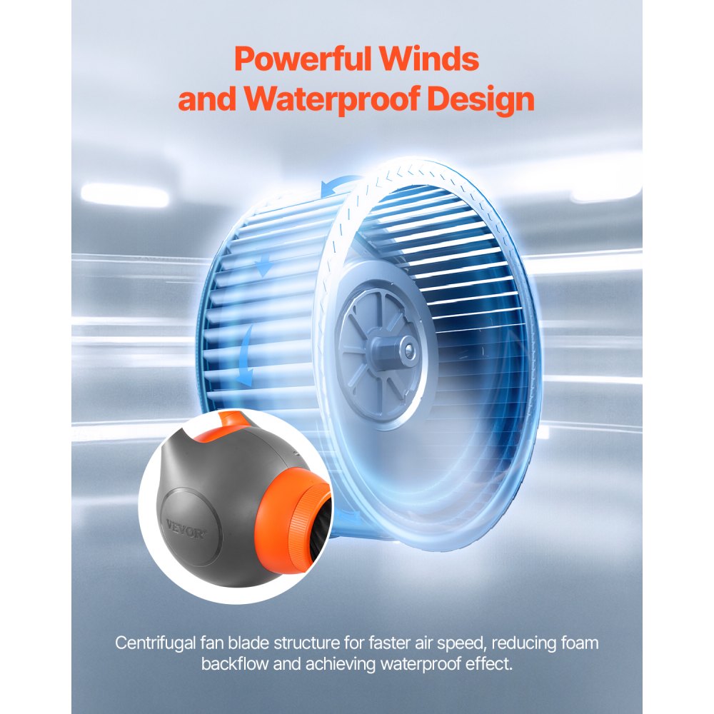 Niski poziom hałasu i niezawodność: nasza armatka pianowa wykorzystuje wentylator promieniowy z oddzielnym silnikiem i przepływem powietrza, aby zapobiec przedostawaniu się piany wodnej do panelu sterowania i uszkodzeniu wentylatora. Poziom hałasu został zredukowany do 80 dB, dzięki czemu urządzenie idealnie nadaje się do stosowania w ogrodzie, nawet w pobliżu dzieci.