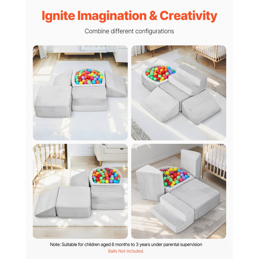 Miękkie klocki konstrukcyjne VEVOR, zestaw 5 elementów, piankowe klocki konstrukcyjne dla dzieci w wieku od 6 miesięcy do 3 lat, z basenem z piłeczkami (piłki nie są dołączone), zestaw do wspinaczki i raczkowania w pomieszczeniach - Sport i rekreacja | Galaxy Sklep