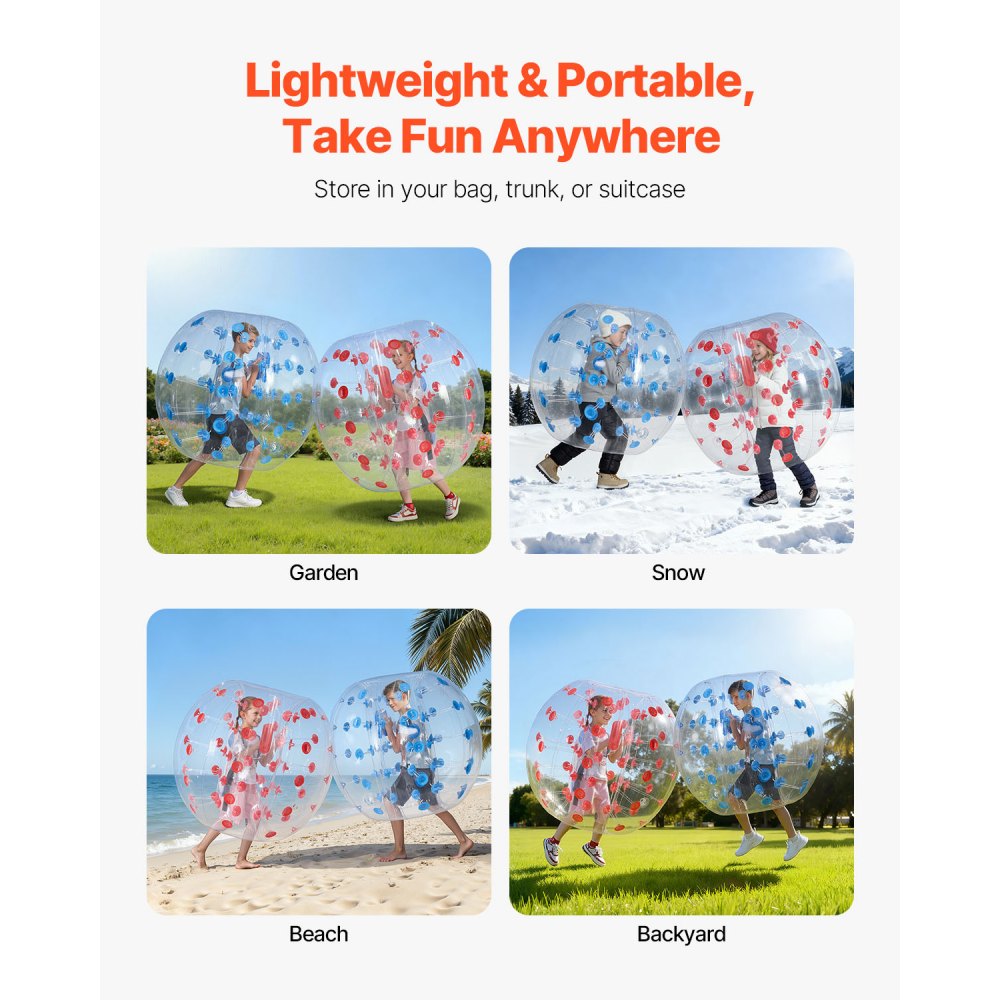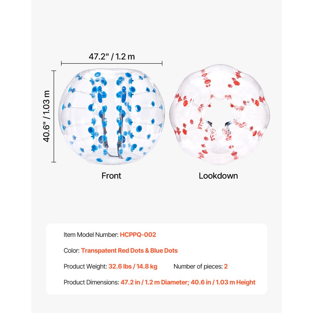 Nadmuchiwana piłka Bumper Ball, zestaw 2 sztuk, 1,2 m x 1,03 m, piłka do odbijania się, PVC Body Bubble, do aktywności na świeżym powietrzu, nadmuchiwana piłka Bumper Ball w czerwone i niebieskie kropki